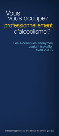 Cette brochure s’adresse à ceux qui travaillent dans le domaine de l’alcoolisme, fournit des informations sur les Alcooliques anonymes, et décrit certaines approches prises par les professionnels de la santé pour référer les buveurs à problème aux AA.