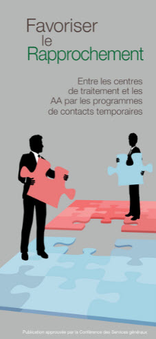 Cette brochure s’adresse à ceux qui servent les AA en tant que contacts temporaires pour les nouveaux quittant un lieu de traitement (« Favoriser le rapprochement ») ou qui transmettent le message au sein des centres de traitements. Cette brochure présente clairement les lignes de conduites et les éléments dont se souvenir.