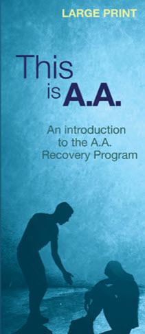 Pamphlet “This is A.A. An introduction to the A.A. Recovery Program”, in large print.