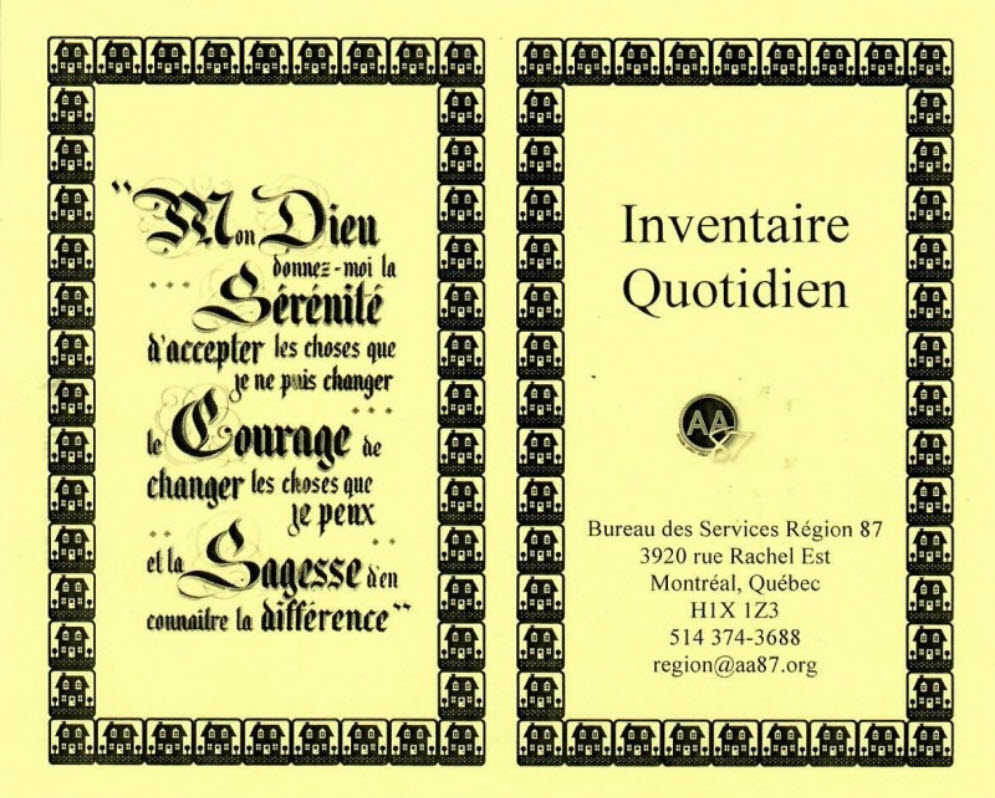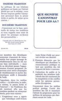 Un petit livre pratique pour celui ou celle qui commence. Il contient des extraits des principales publications des Alcooliques Anonymes, 12 questions pour aider à s’identifier, différents textes pour passer à travers des journées difficiles et un espace pour prendre des numéros de téléphone.