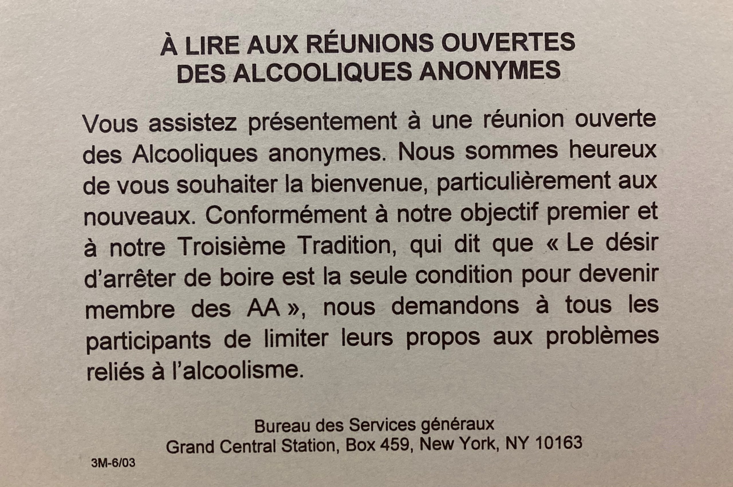 Renseignements sur les Alcooliques Anonymes à l’intention de toute nouvelle personne chez les AA et à l’intention de quiconque dirige quelqu’un chez les AA.