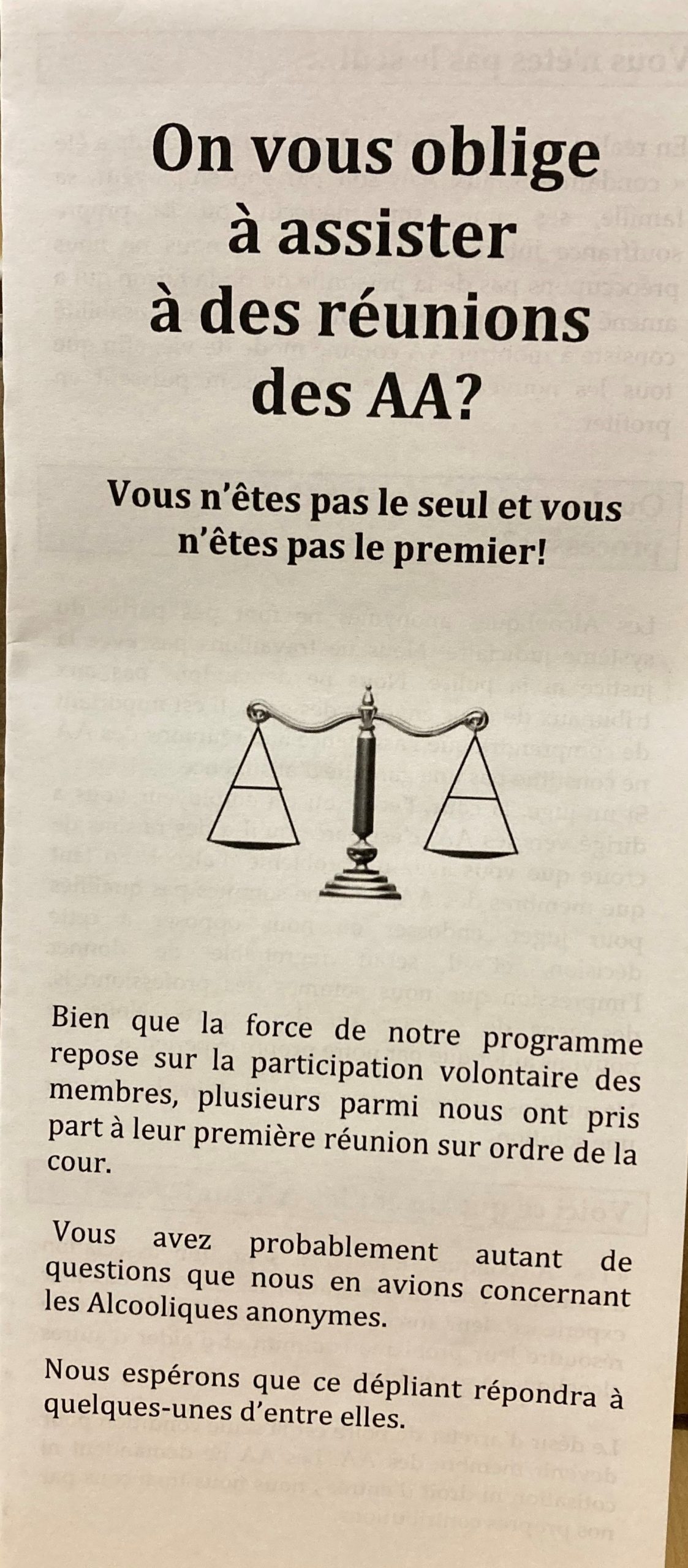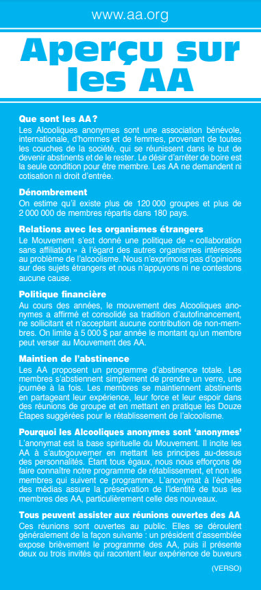 Dépliant présentant les informations de base sur le Mouvement des AA.