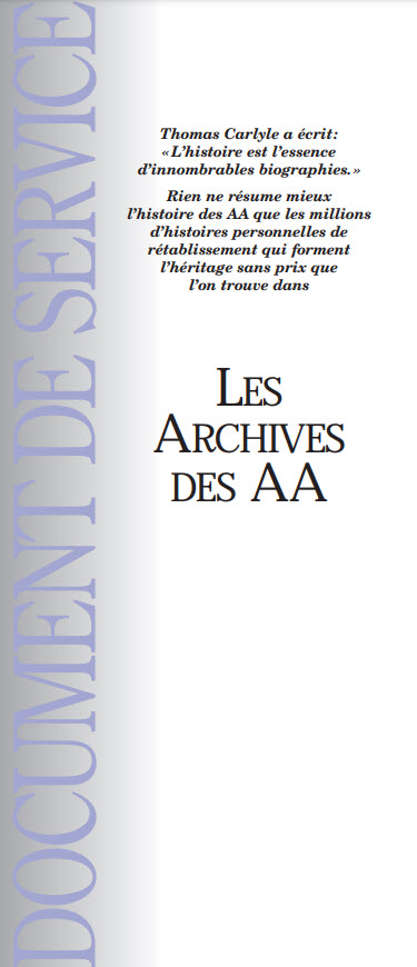 Un document de service qui décrit l’importance historique et le fonctionnement des Archives des AA au niveau du groupe, du district, de la région, de l’intergroupe/bureau central, du territoire ou du Bureau des Services généraux.